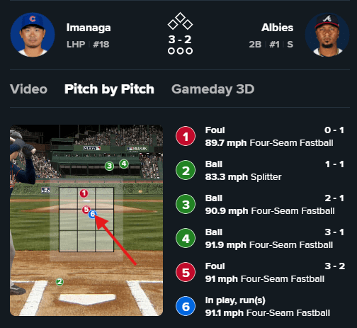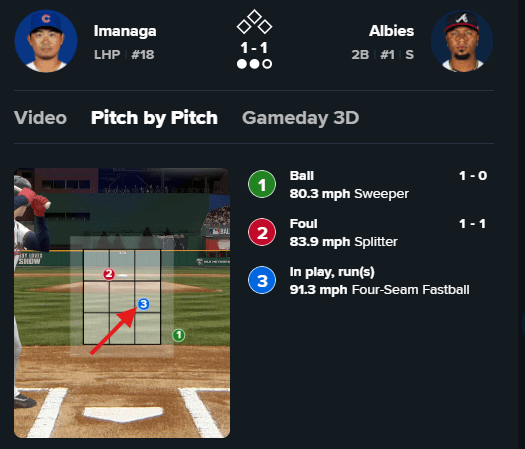 One game later, Imanaga gives Albies another fastball near middle middle, and not high enough. Verdict: Fastball – Mistake