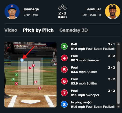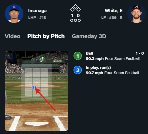 Middle-middle fastball. Verdict: Fastball – Mistake