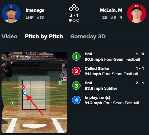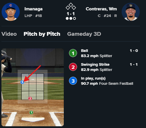 Fastball middle inner half = bad. Verdict: Fastball – Mistake